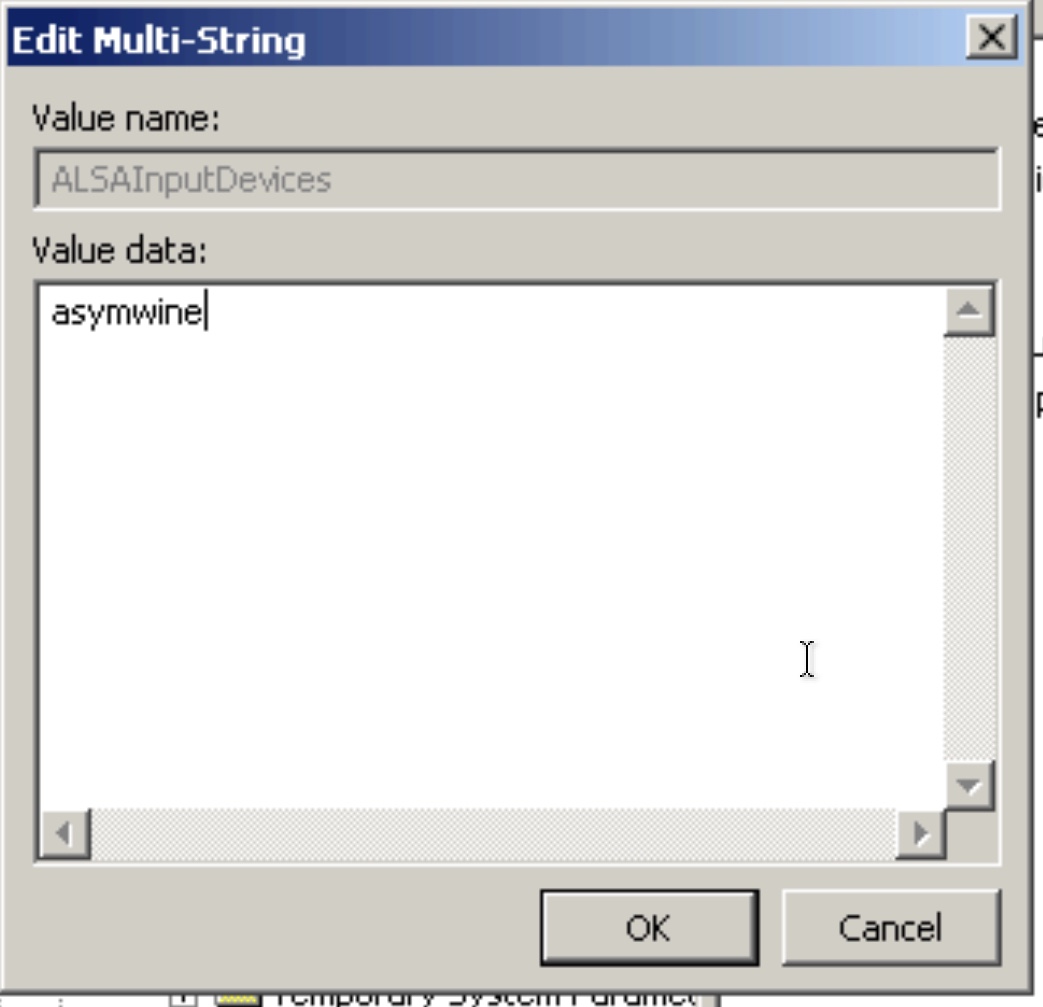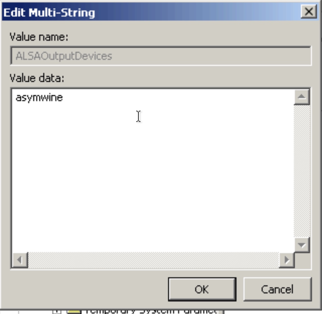 From within winealsa.drv, create a new “Multi-string value”.